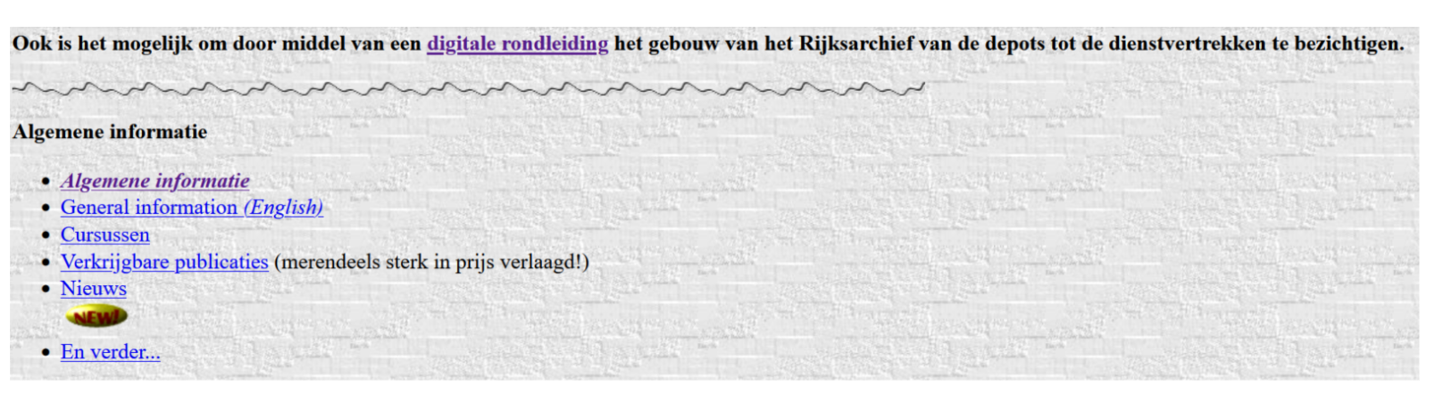 De oude websites van het archief zijn nog steeds te bezoeken via de Wayback Machine oftewel: het archief van het internet. Voel je vrij om door de oude websites te scrollen.