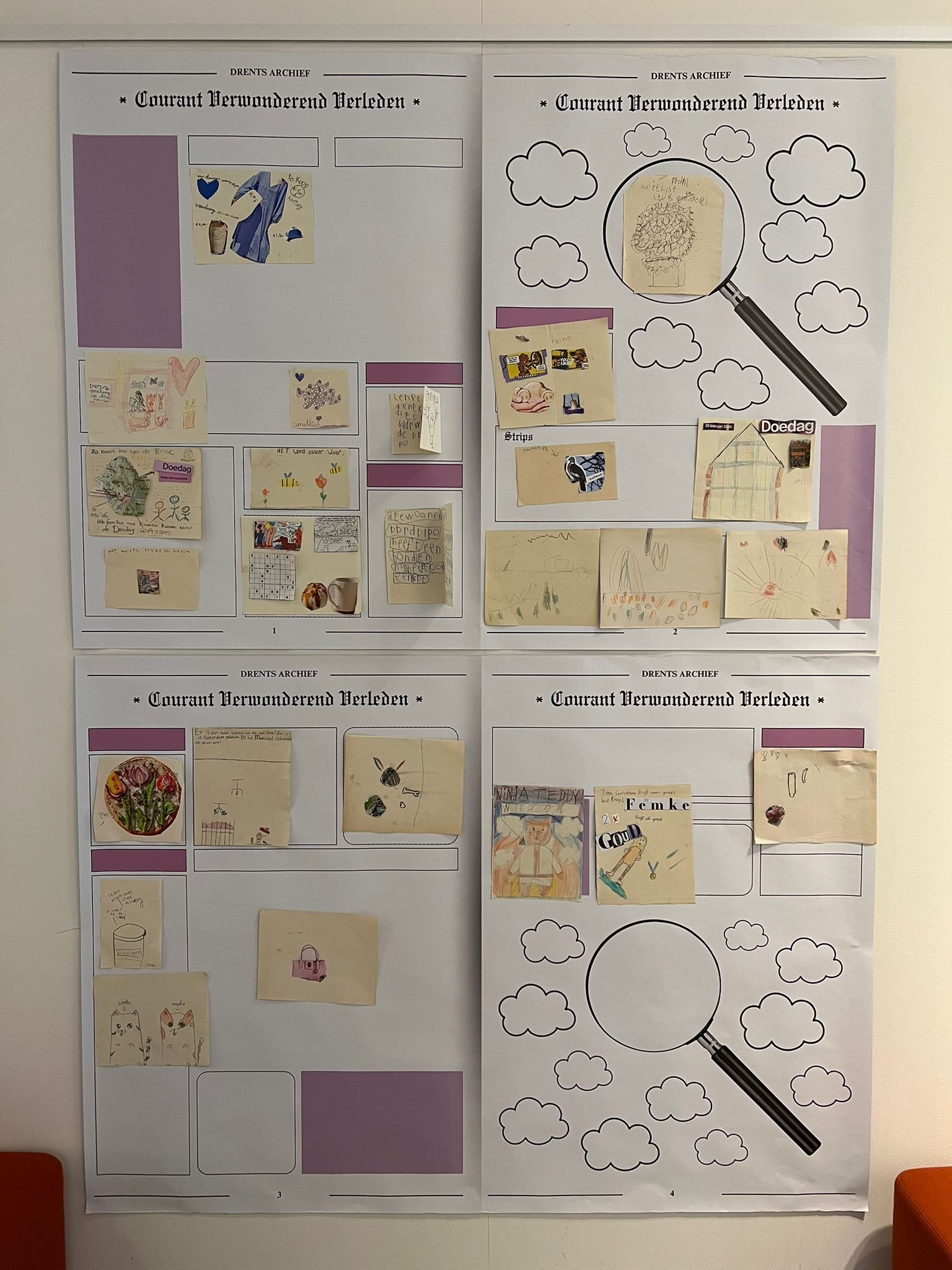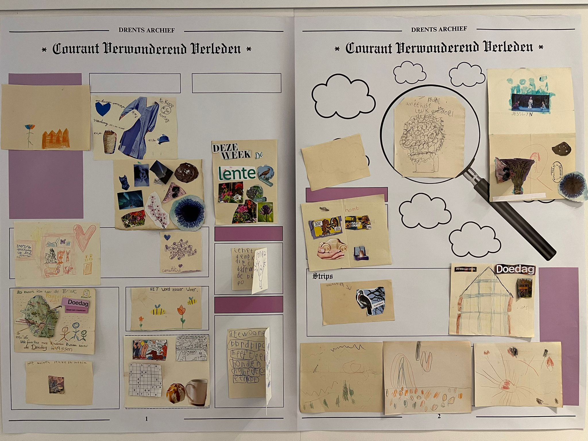 In het Drents Archief bekeken de jonge bezoekers eerst een heel oude krant en gingen ze daarna aan de slag met hun eigen muurkrant. Het resultaat was een goed gevulde krant van woensdag 25 februari 2026! Met het nieuws van jong en oud, echt prachtig.